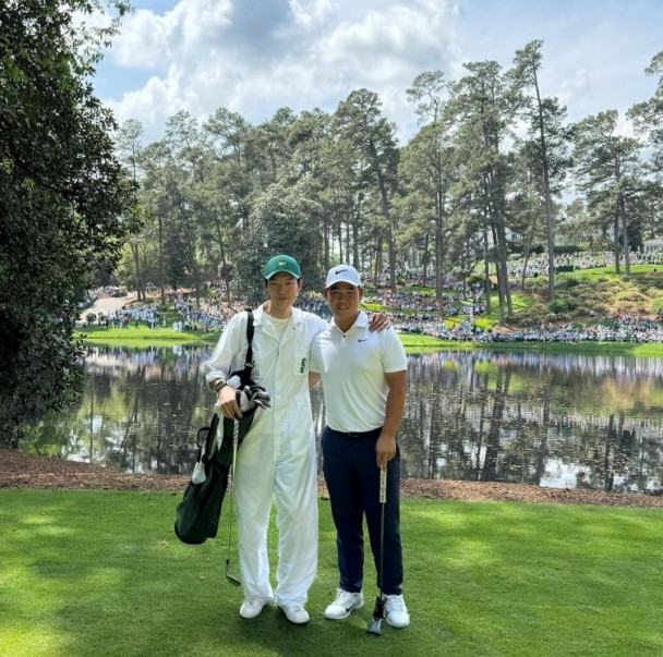 10일(현지시간) 류준열은 미국 조지아주 오거스타 내셔널 골프클럽의 부설인 파3 골프장에서 열린 ‘파3 콘테스트’에서 김주형의 골프 백을 메고 필드에 올랐다.