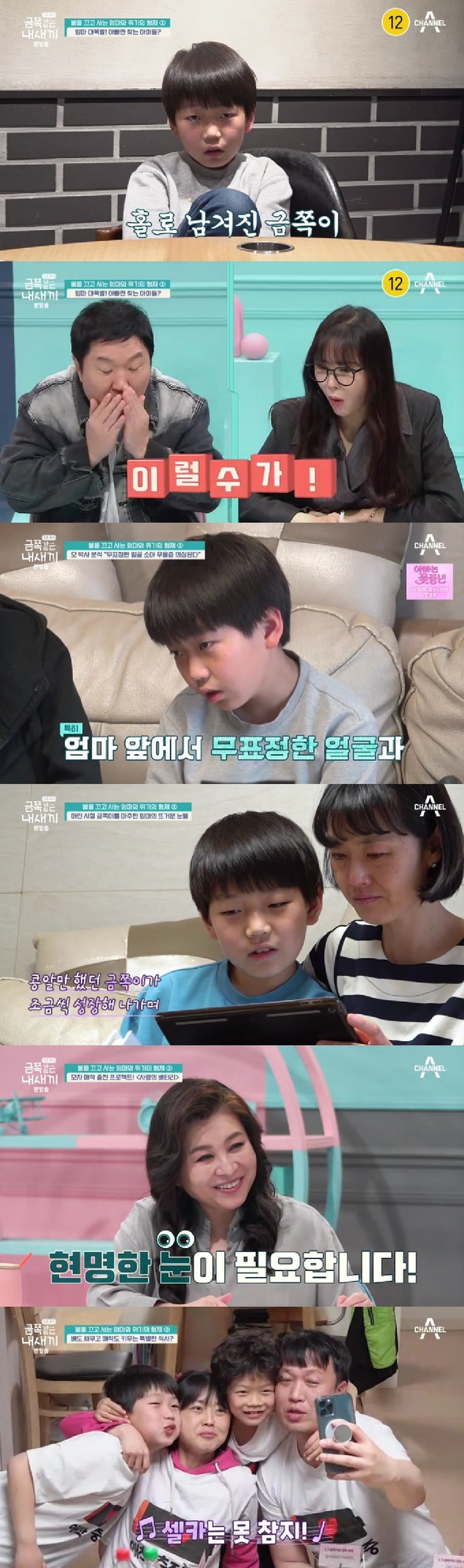 12일 방송된 채널A ‘금쪽같은 내새끼’에서 ‘불을 끄고 사는 엄마와 위기의 형제’ 2편이 공개됐다. 앞서 방송에서 병적으로 절약에 집착해 집안에 불을 끄고, 변기에 물도 못 내리게 했던 엄마는 오은영 박사의 조언으로 절약 집착하느라 지나치게 간섭했던 일상을 바꾸려 노력했다.
