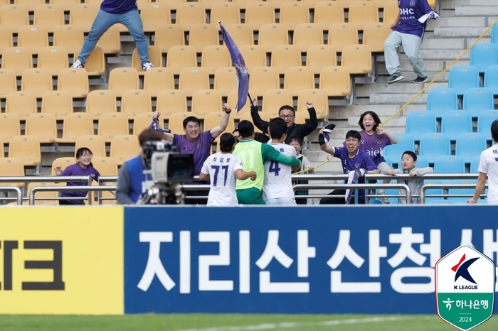 [스포츠서울 | 김용일 기자] K리그2(2부)에서 FC안양이 경기 종료 직전 터진 김정현의 극적인 결승포로 시즌 무패 가도를 이어가며 선두를 지켰다.