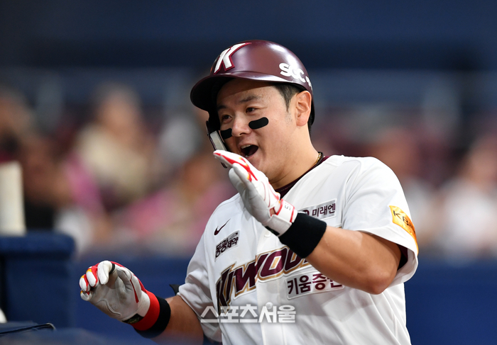 키움 4번타자 최주환이 14일 고척스카이동에서 열린 2024프로야구 키움히어로즈와 롯데자이언츠의 경기 3회말 선두타자로 나와 솔로홈런을 터트린 후 홈인하고 있다. 2024.04.14. 고척 | 강영조기자 kanjo@sportsseoul.com