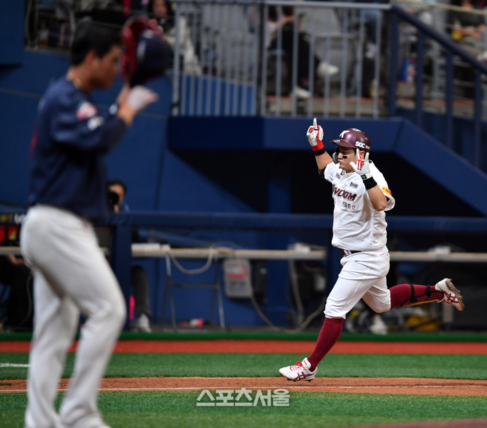 키움 4번타자 최주환이 14일 고척스카이동에서 열린 2024프로야구 키움히어로즈와 롯데자이언츠의 경기 3회말 선두타자로 나와 솔로홈런을 터트린 후 홈인하고 있다. 2024.04.14. 고척 | 강영조기자 kanjo@sportsseoul.com