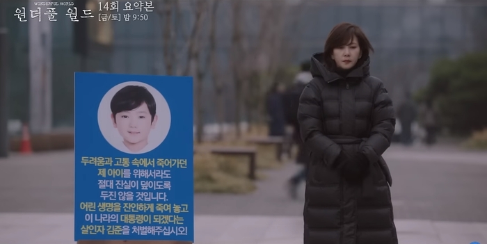 다소 아쉬움이 남는 장면도 있다. 수현이 7년간 수감생활 뒤 매끄러운 머릿결과 피부, 네일케어까지 완벽한 모습으로 출소하는 장면이 대표적이다. 아들의 죽음에 관한 진상규명 시위를 할 때도 비가 오고 추운 날씨인데도 흐트러지지 않는 모습이 수현의 상황과 거리감을 만들었다.
