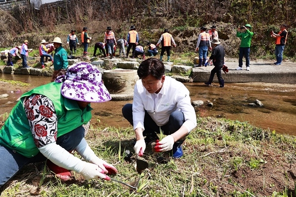 꽃창포는 중금속, 영양염류 흡수와 악취제거 능력이 뛰어나 수질정화식물로 인기를 얻고 있는 수생식물로 이날 식재에는 보성군청년협의체를 비롯한 15개 지역단체가 동참했다.