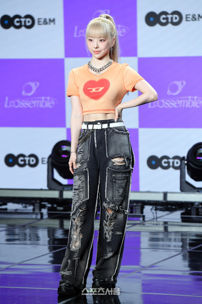 루셈블의 비비가 15일 서울 강남구 일지아트홀에서 진행된 두 번째 미니앨범 ‘원 오브 어 카인드(One of a Kind)’ 발매 기념 미디어 쇼케이스에서 취재진을 향해 포즈를 취하고 있다. 루셈블은 걸그룹 이달의 소녀 출신 고원·혜주·현진·비비·여진이 전 소속사를 떠나 현 소속사에서 결성한 팀으로 지난해 10월 데뷔했다. 2024. 4. 15. 박진업 기자 upandup@sportsseoul.com
