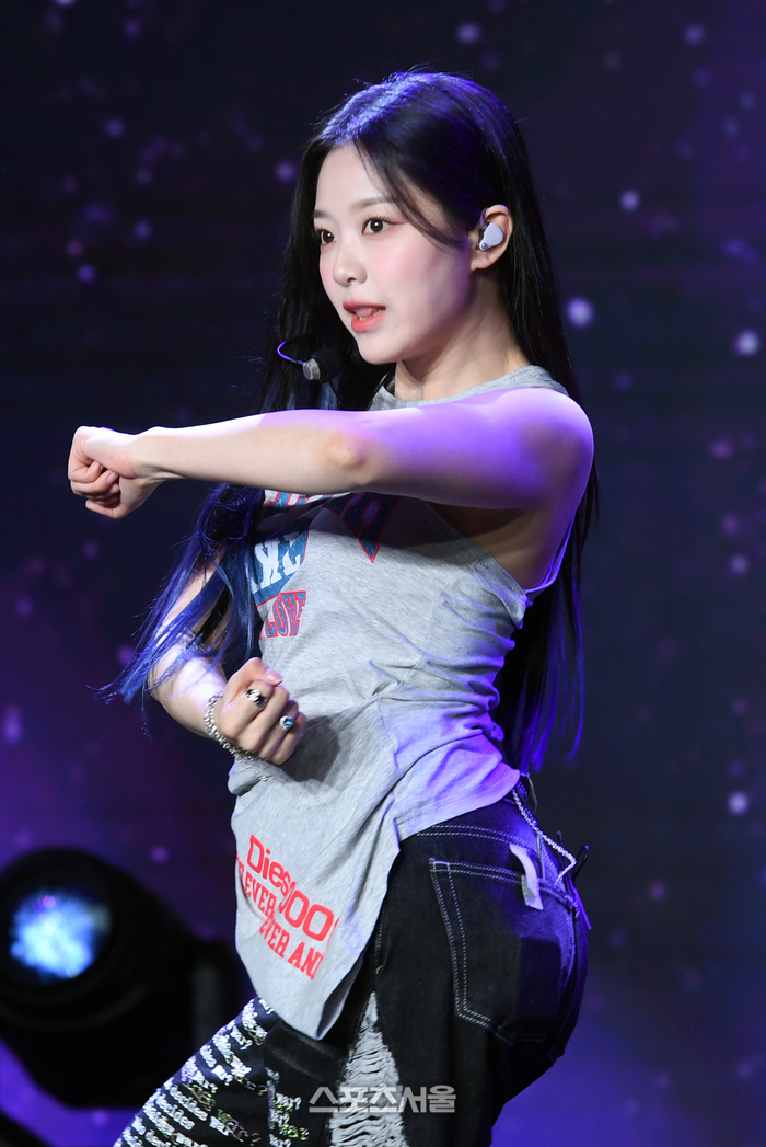 루셈블의 현진이 15일 서울 강남구 일지아트홀에서 진행된 두 번째 미니앨범 ‘원 오브 어 카인드(One of a Kind)’ 발매 기념 미디어 쇼케이스에서 열정적인 무대를 선보이고 있다. 루셈블은 걸그룹 이달의 소녀 출신 고원·혜주·현진·비비·여진이 전 소속사를 떠나 현 소속사에서 결성한 팀으로 지난해 10월 데뷔했다. 2024. 4. 15. 박진업 기자 upandup@sportsseoul.com