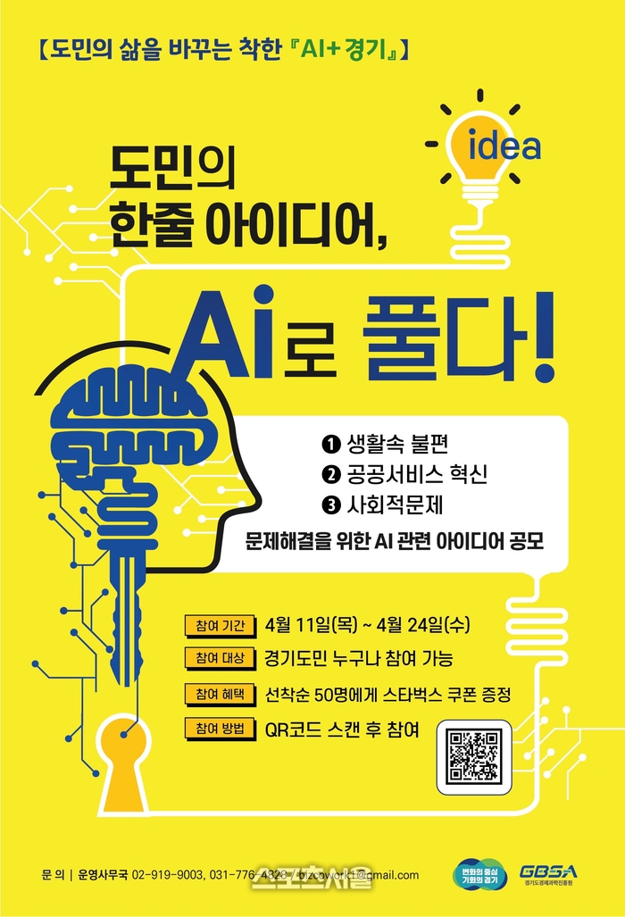 〔스포츠서울│수원=좌승훈기자〕경기도경제과학진흥원은 도민들의 일상생활 속 불편사항을 인공지능(AI) 기술을 활용하여 해결하는 ‘AI 실증 아이디어 발굴’수요조사를 오는 24일까지 진행한다고 15일 밝혔다.