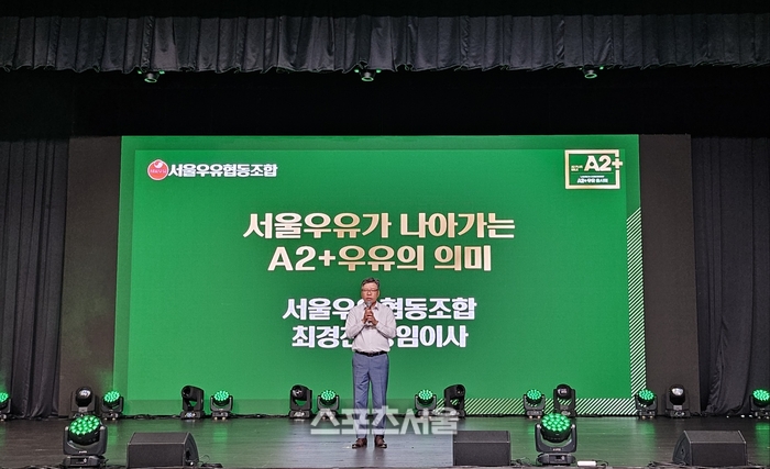 첫 축사에 나선 문진섭 서울우유협동조합 조합장은 “서울우유가 치열하게 고민하고 연구한 결과, 인공적 방식이 아닌 원유 자체를 변화시키는 데 중점을 뒀다”며 “A2+ 우유 출시로 국내 우유 시장 우위를 점하겠다”고 말했다.