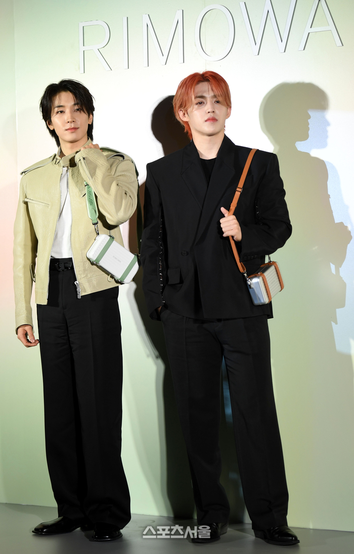 세븐틴 원우(왼쪽)와 에스쿱스가 15일 서울 성수동 에스팩토리 D동에서 열린 리모와(RIMOWA) 포토콜행사에서 포토타임을 갖고 있다. 2024. 4. 15. 최승섭기자 thunder@sportsseoul.com