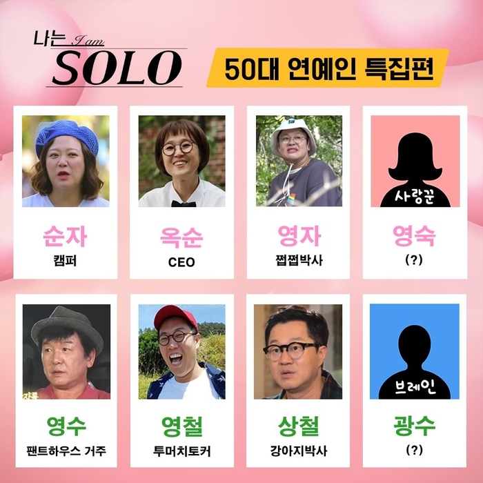 앞서 비보티비는 “송은이, 김숙과 ‘나는 솔로’ 출연할 50대 연예인 절찬 모집 중”이라며 “지난주 비밀보장에서 ‘나솔’ 언니 송해나와 전화 중 추진된 ‘나는 솔로 50대 연예인 특집”이라는 글과 함께 이영자, 송은이, 김숙, 주병진, 지상렬, 김영철 등 명단을 공개했다.