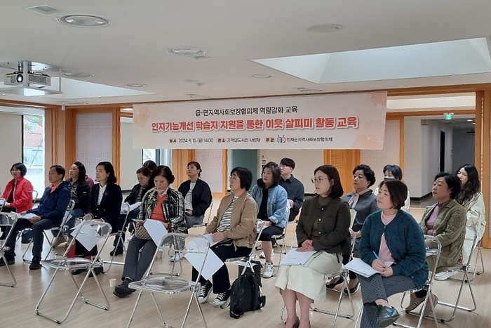 [스포츠서울ㅣ김기원기자] 인제군 읍면지역사회보장협의체연합회(대표 최현태)는 지난 15일 인제 기적의도서관 사랑채에서 읍면지역사회보장협의체 위원을 대상으로 ‘인지기능개선 학습지 지원을 통한 이웃 살피미 활동교육’을 진행했다.