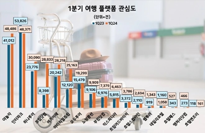데이터앤리서치의 한 관계자는 “올 1분기 여행 플랫폼 업계 전체 관심도는 지난 2023년 1분기와 비교했을 때 27.90% 상승한 것으로 나타났다”며 “코로나로 인해 침체됐던 여행 업계가 빠른 속도로 회복세를 보이고 있다”고 전했다. rainbow@sportsseoul.com