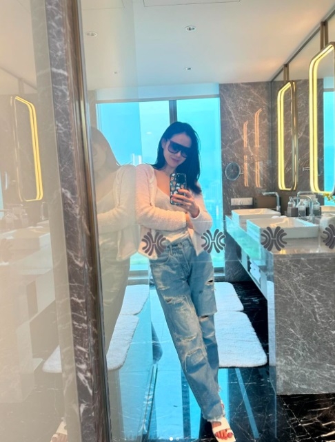 덧붙인 사진 속 손예진은 호텔 화장실 거울 앞에서 사진을 찍고 있다. 다른 사진에는 장미꽃과 함께 곰인형 두 쌍이 손예진을 반기고 있다.