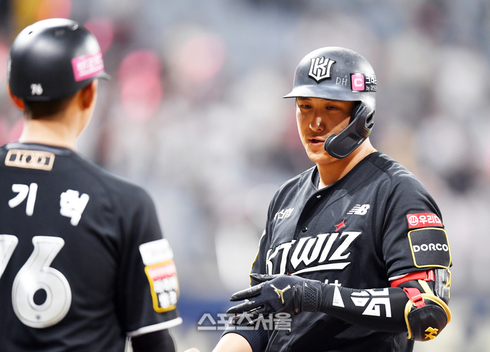 KT 6번타자 황재균이 16일 고척스카이돔에서 열린 2024프로야구 키움히어로즈와 KT위즈의 경기 2회초 무사 1루에서 안타로 출루하고 있다. 2024.04.16. 고척 | 강영조기자 kanjo@sportsseoul.com