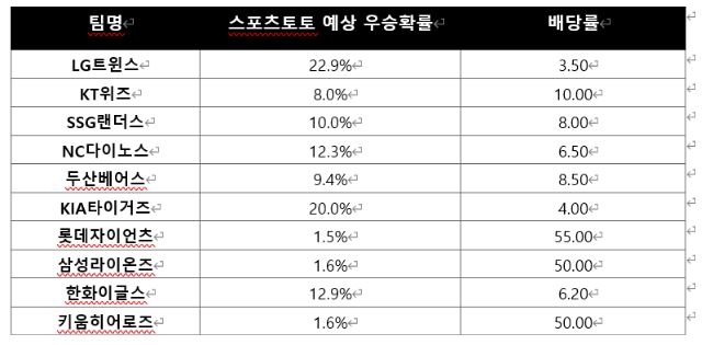 국민체육진흥공단이 발행하는 체육진흥투표권 스포츠토토의 수탁사업자인 스포츠토토코리아가 현재 공식 인터넷 발매사이트 베트맨을 통해 진행하고 있는 ‘2024년 한국프로야구 우리팀 우승기원!’ 프로모션이 이번 주 마감을 앞두고 있다고 밝혔다.