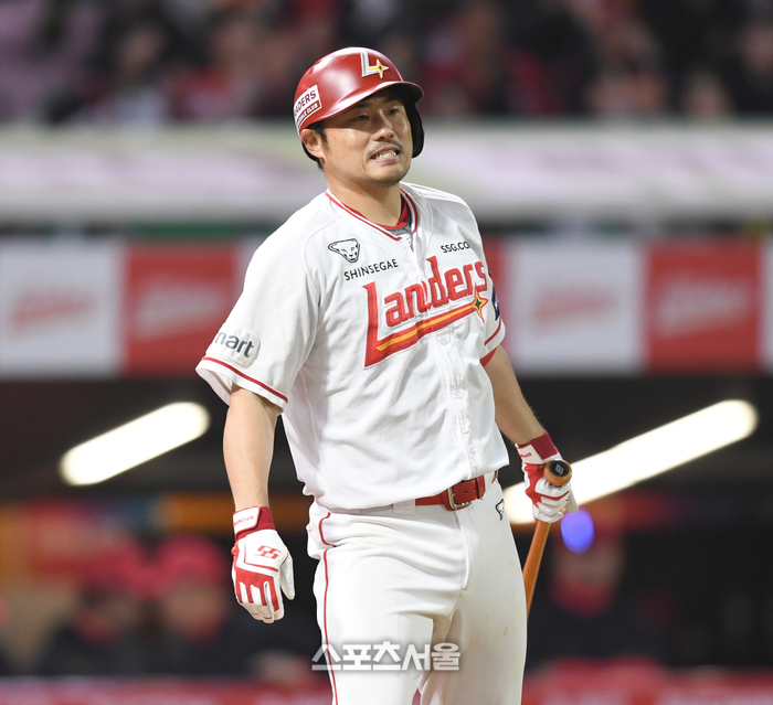 SSG 이지영이 17일 인천 SSG랜더스필드에서 열린 2024 KBO리그 KIA와 경기 6회말 2사1,2루 헛스윙 삼진아웃을 당한 후 아쉬워하고 있다. 2024. 4. 17. 문학 | 최승섭기자 thunder@sportsseoul.com