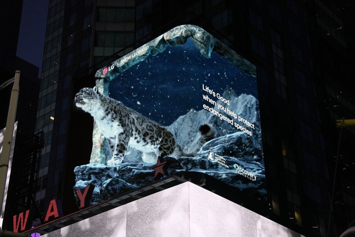LG전자는 지난 16일(현지 시간) 미국 뉴욕 타임스스퀘어 전광판에 ‘LG와 함께하는 위기 동물 보호 캠페인(The LG Endangered Species Series)’ 영상을 공개했다.