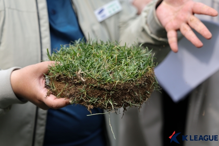 K리그 잔디는 2002 한일월드컵 경기장을 건설하며 유럽에서 주로 사용하는 켄터키 블루그래스를 들여왔다. 그러나 한지형 잔디다. 갈수록 고온다습한 국내 기후에 견디지 못하면서 훼손이 심각해지고 있다. 한국프로축구연맹이 지난 2021년부터 삼성물산 잔디환경연구소를 잔디 컨설팅 업체로 선정, 그라운드 품질 향상에 나섰지만 효과는 미비하다. 서울월드컵경기장만 해도 인조잔디와 천연잔디를 섞은 하이브리드 잔디를 뒀다. 잔디연구소에서 밀도, 색상, 뿌리 길이 등 잔디 생육과 토양층까지 진단했다. 하지만 잔디의 결속력은 기대에 미치지 못한다.