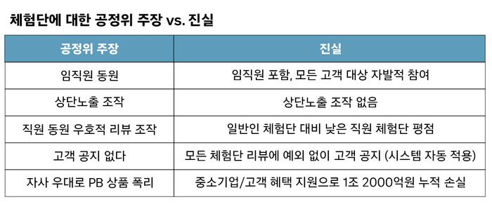 쿠팡은 “쿠팡 PB 제조사의 90%는 중소업체”라며 “대기업의 시장 장악으로 생존이 어려운 우수 중소기업의 PB 상품을 소개하고자 고객과 임직원의 자발적 참여를 통해 공정하고 적법하게 쿠팡 체험단을 운영하고 있고 고객에게도 이를 분명하게 고지하고 있다”고 말했다.