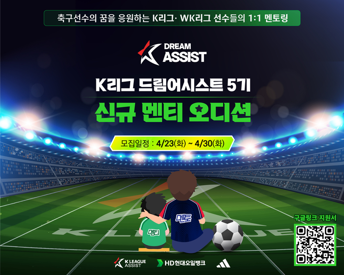 [스포츠서울 | 박준범 기자] ‘K리그 드림어시스트’ 5기에 참가할 멘티를 공개 모집한다.
