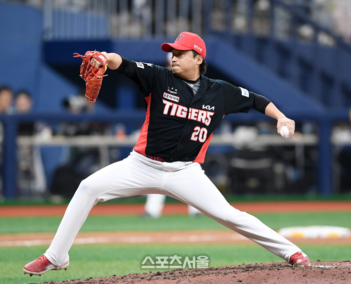KIA 타이거즈 이준영이 23일 고척 스카이돔에서 열린 2024 KBO리그 키움 히어로즈와 경기 7회말 등판해 힘차게 공을 던지고 있다. 2024. 4. 23. 고척 | 박진업 기자 upandup@sportsseoul.com
