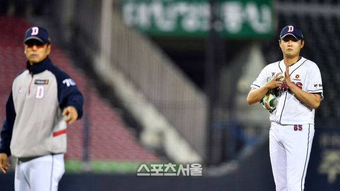 두산 마무리 정철원이 22일 잠실구장에서 열린 2024프로야구 두산베어스와 NC다이노스의 경기 9회초 등판해 무사 만루위기에서 강판되고 있다. 2024.02.23. 잠실 | 강영조기자 kanjo@sportsseoul.com