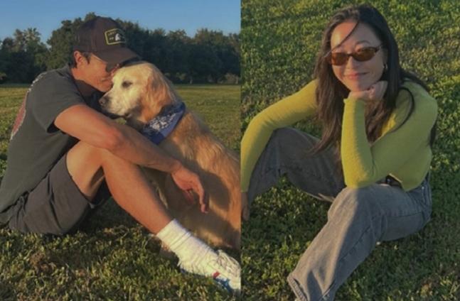 사진 속 루 쿠마가이와 다니엘 헤니는 해 질 무렵 공원에서 햋볕을 쬐고 있는 모습이다. 또 잔디밭에 누운 루 쿠마가이 및 반려견을 끌어안고 있는 다니엘 헤니의 모습이 공개됐다.