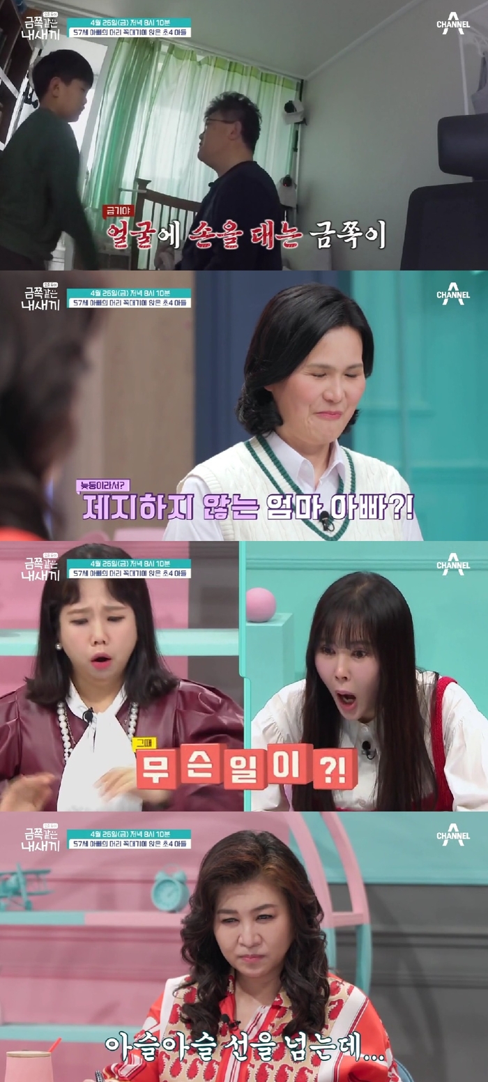 26일 오후 8시10분 방송되는 채널A ‘요즘 육아 - 금쪽같은 내새끼’에서는 전혀 통제되지 않는 초등학교 4학년 금쪽이가 등장했다. 금쪽이 부모는 42세에 얻은 늦둥이 아들을 금지옥엽 키우던 중 아빠와 금쪽이가 일상생활이 불가할 정도로 갈등이 심해져 출연을 결심하게 되었다고 말했다.