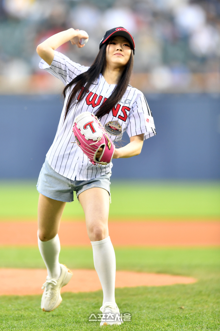 걸그룹 비버업(VVUP)의 현희가 26일 잠실구장에서 열린 2024프로야구 LG트윈스와 KIA타이거즈의 경기에서 시구를 하고 있다. 2024.04.26. 잠실 | 강영조기자 kanjo@sportsseoul.com