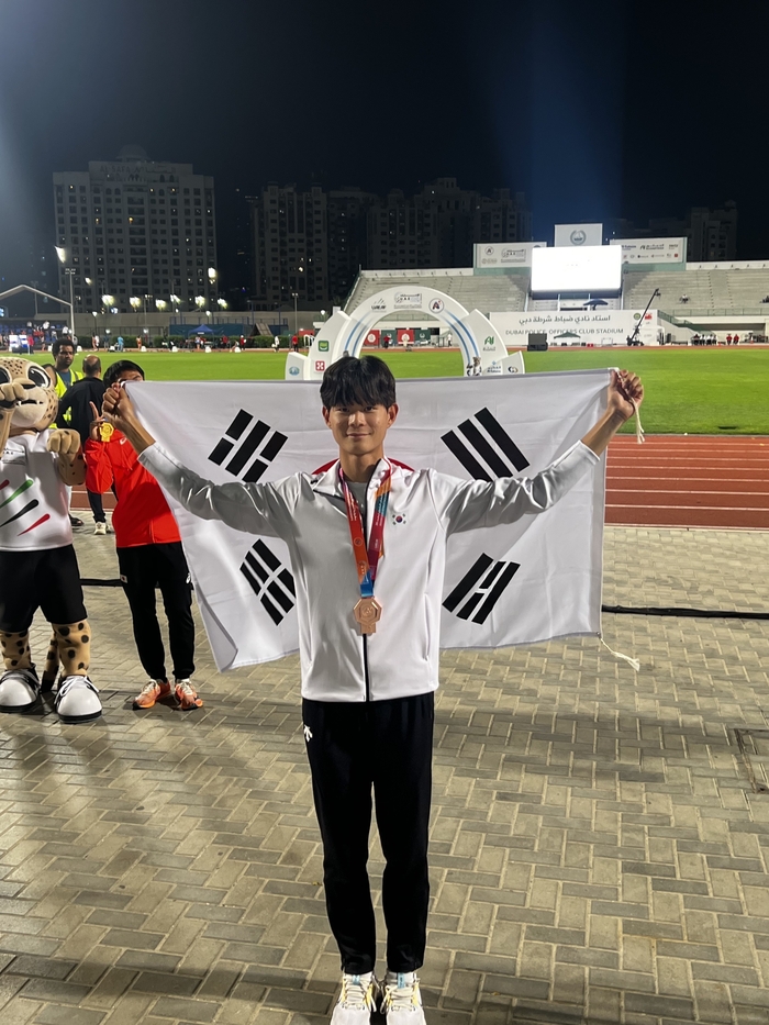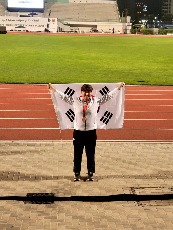 김태희는 27일(한국시간) 아랍에미리트 두바이에서 열린 대회 여자 해머던지기 결승에서 61m19를 던져 중국의 장자러(66m79) 팡링(62m35)에 이어 3위를 기록했다.