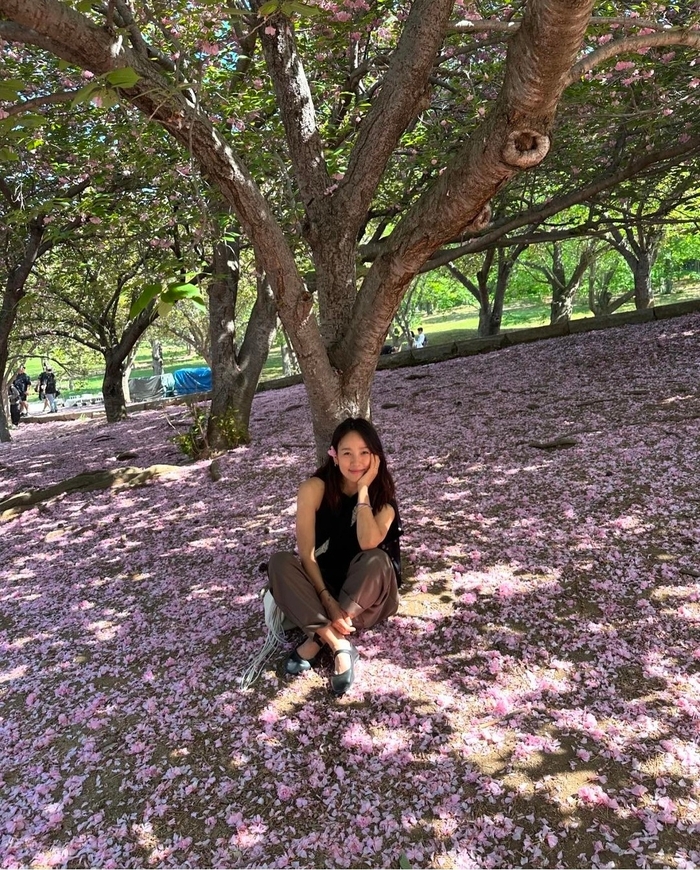 공개한 사진에서 이효리는 날개 조각상 앞에서 사진을 찍고 겹벚꽃 나무 아래서 포즈를 취하고 있어 눈길을 끌었다.