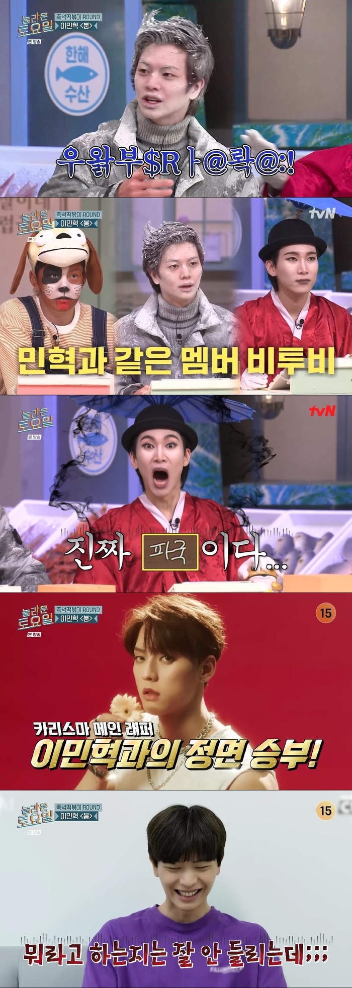 다소 난해한 랩 구간에 분석과 추론이 난무한 가운데, 붐이 “평소 민혁씨라면 여기에 어떤 글자를 넣을 것 같냐”라고 묻자 육성재는 “내가 민혁이 형을 잘 모른다. 대화를 잘 안 해서 잘 모른다”라고 말해 웃음을 줬다.