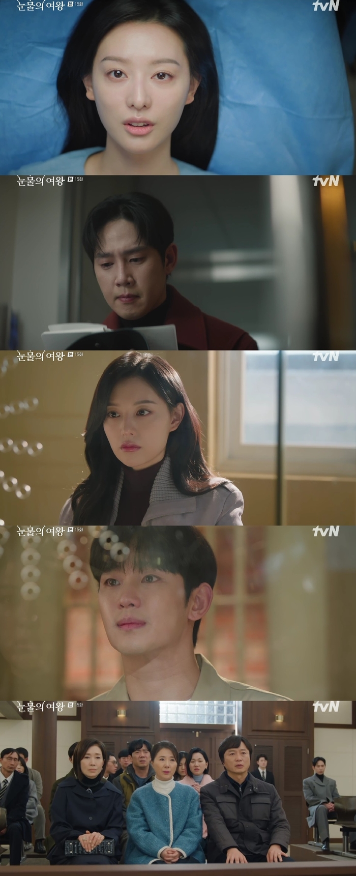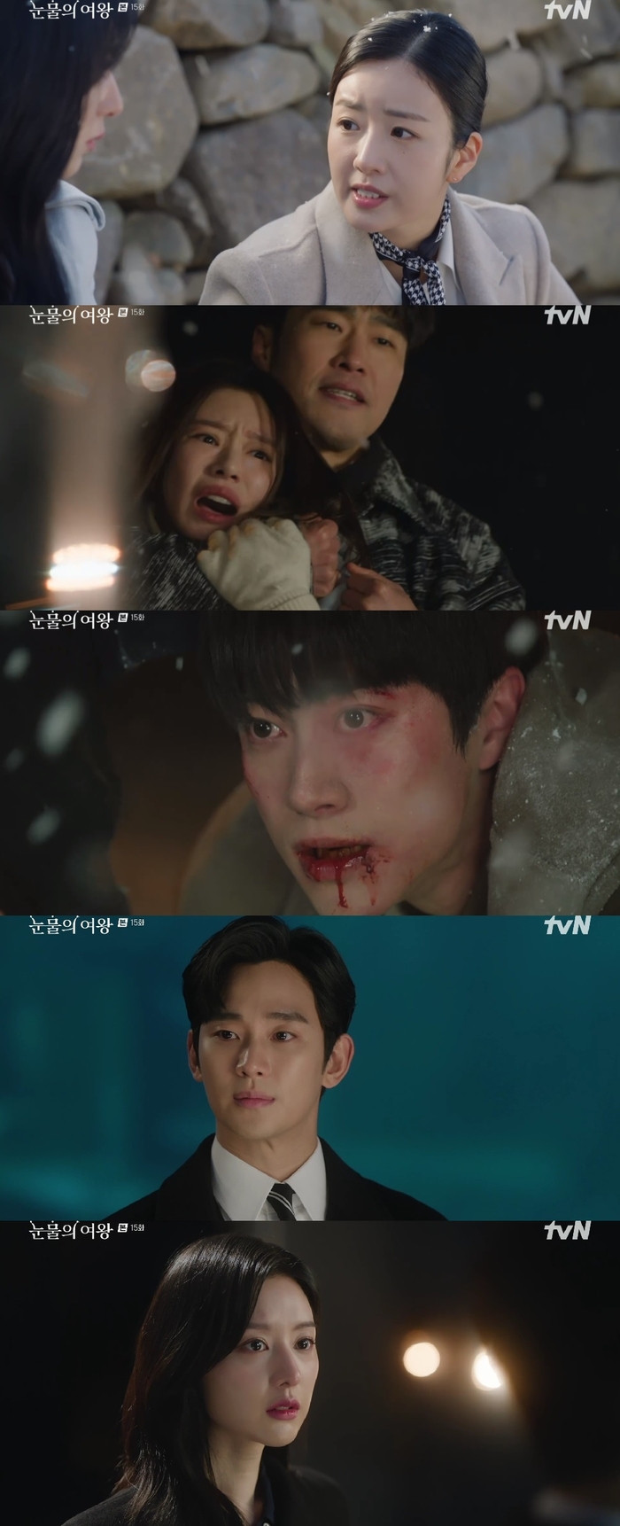 27일 방송된 tvN 주말극 ‘눈물의 여왕’에서 홍해인(김지원 분)은 무사히 뇌수술을 마쳤지만 백현우(김수현 분)라는 이름 외에 모든 것을 잊어버렸고, 백현우를 살인범으로 둔갑시켜 구속시킨 윤은성(박성훈 분)은 병실에서 해인의 옆자리를 지켰다.