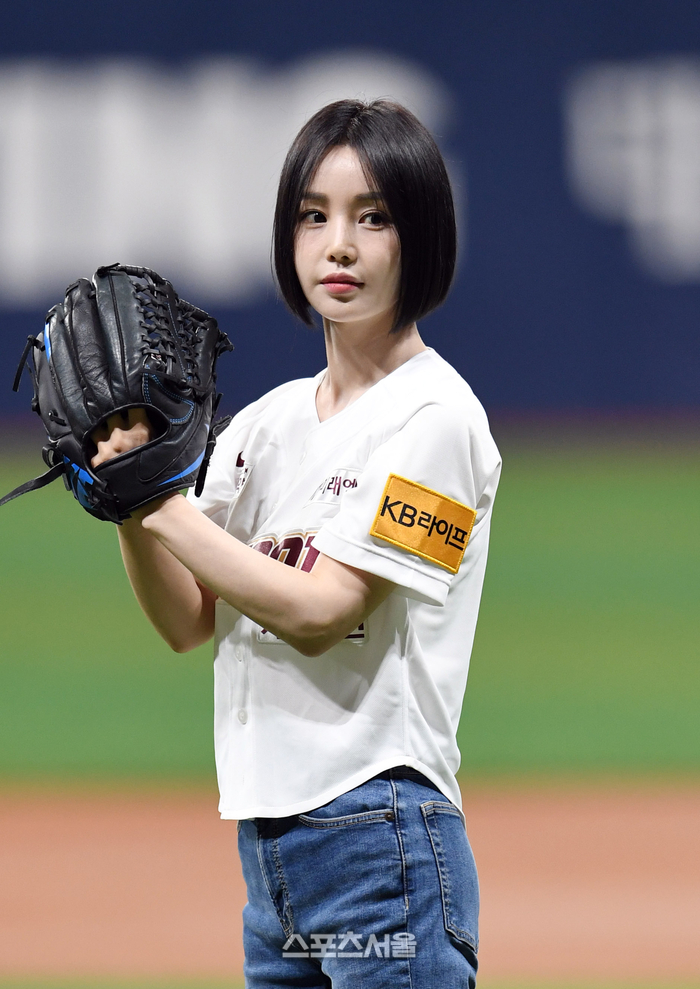 배우 겸 가수 남규리가 28일 고척스카이돔에서 열린 2024 KBO리그 키움 히어로즈와 삼성 라이온즈의 경기에 앞서 시구를 하고 있다. 2024. 4. 28. 고척 | 박진업 기자 upandup@sportsseoul.com