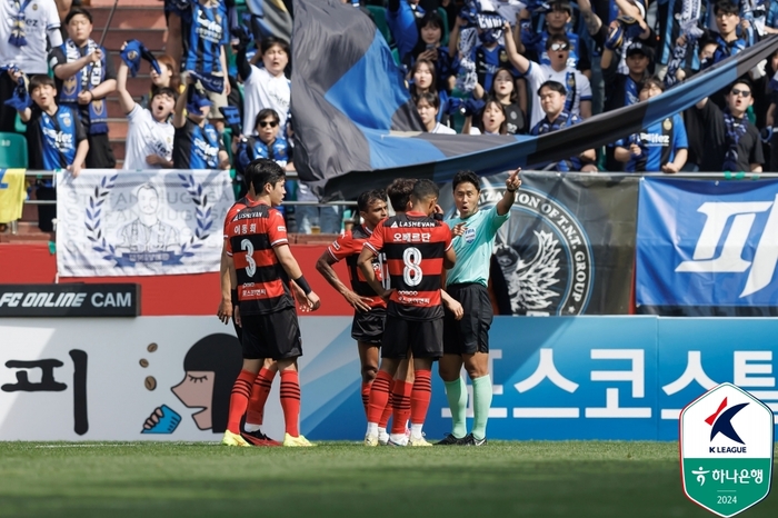 포항 스틸러스는 28일 포항스틸야드에서 열린 하나은행 K리그1 2024 9라운드 인천 유나이티드와 홈경기서 0-0 무승부를 거뒀다.