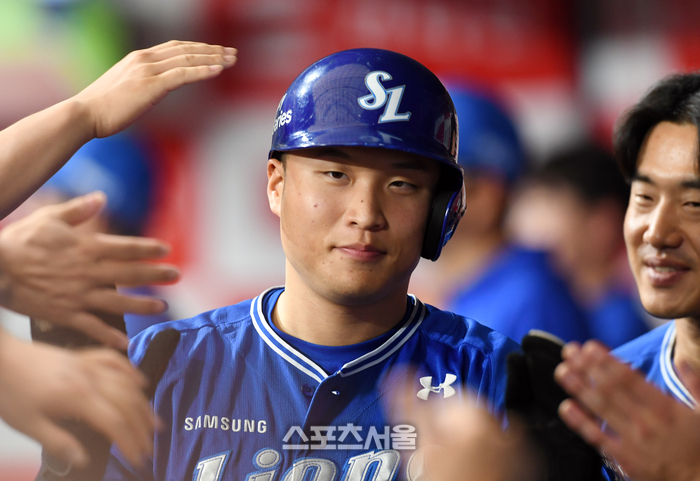 삼성 라이온즈 이병헌이 28일 고척스카이돔에서 열린 2024 KBO리그 키움 히어로즈와 경기 5회초 1사 만루 상황에서 이재현의 적시타에 3루에서 홈으로 뛰어 득점한 뒤 동료들과 하이파이브를 하고 있다. 2024. 4. 28. 고척 | 박진업 기자 upandup@sportsseoul.com