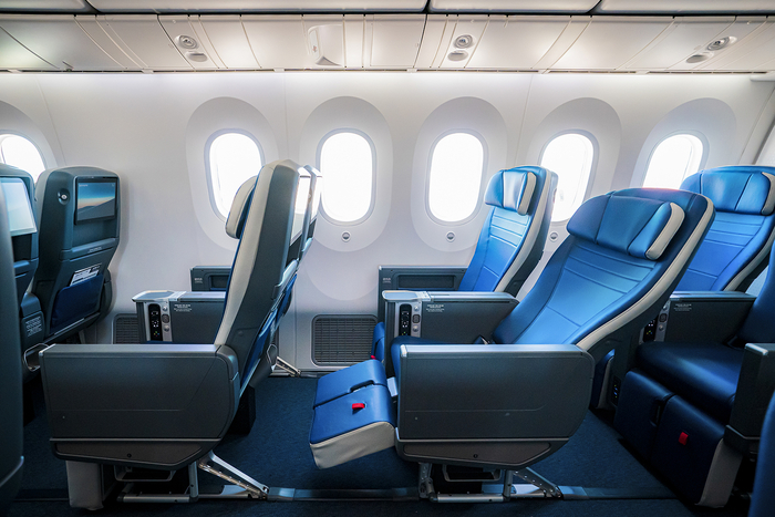 비즈니스 좌석 대신 ‘프리미엄 이코노미 좌석’과 ‘이코노미’ 등급을 운영해 여유로운 좌석 공간을 만들었고, 특히 프리미엄 이코노미의 좌석 간 간격은 42인치(약 107cm)로 구성해 장거리 여행객에게 여유로운 좌석 공간을 제공하며 여행객들에게 호평 받고 있다.