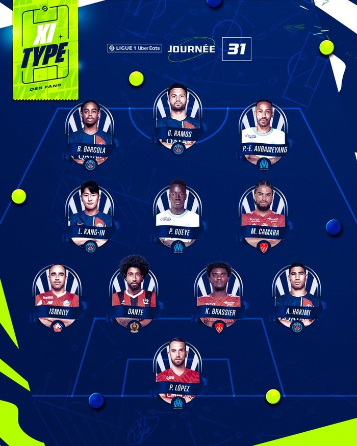 리그1 사무국은 1일(한국시간) 리그1 31라운드 베스트11을 선정해 발표했다.