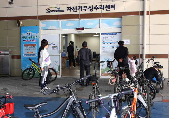 한편 스피돔에서는 자전거도 무상으로 수리받을 수 있다. 매주 일요일 오후 1시부터 6시까지 운영되는 ‘광명스피돔 자전거 무상수리센터’는 전문 정사와 정비 능력이 검증된 은퇴 경륜 선수들이 직접 자전거를 수리하고 있다. 노후나 파손된 핸들 그립, 브레이크, 스탠드, 변속기, 스프라켓, 튜브, 보조 바퀴, 페달, 체인 등 9종의 부품을 교체 받을 수 있다.