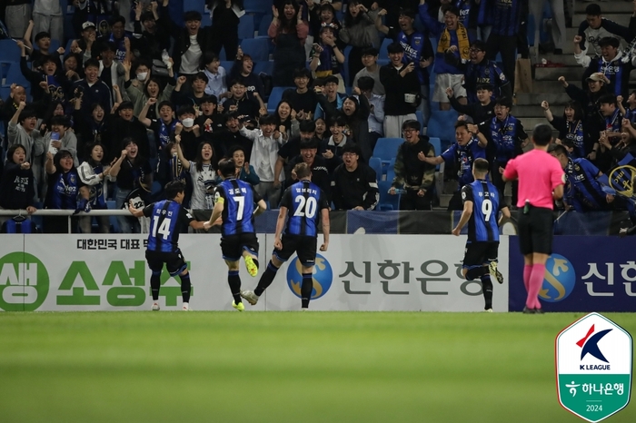 승점 13(3승4무3패)을 기록한 인천은 강원FC(승점 12)를 제치고 5위로 올라섰다. 전북은 2승4무4패(승점 10)로 8위다.