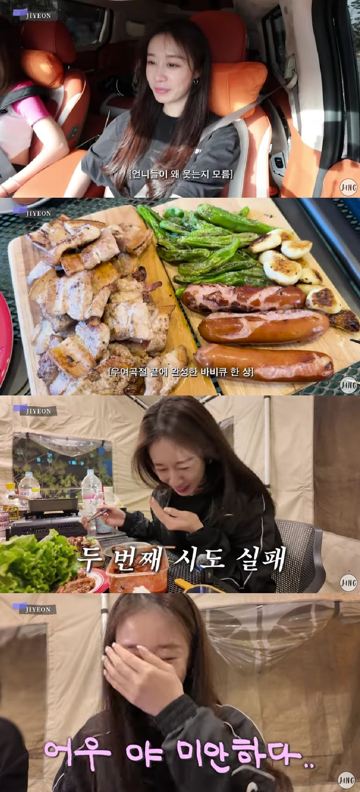 2일 지연의 유튜브채널에 ‘웃다 지친 야외 바비큐 나들이 | 먹방부터 노래 맞히기 게임까지’ 에피소드가 공개됐다. 지인들과 나들이를 계획한 지연은 설레는 표정으로 각종 고기와 소시지, 채소까지 장을 잔뜩 보고 구워 먹을 옥수수까지 구매해 근교 캠핑장으로 향했다.