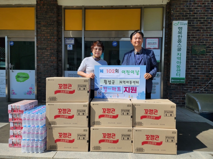 [스포츠서울ㅣ김기원기자] 횡성 킹마트는 어린이날을 맞아 횡성군에 있는 4개 지역아동센터에 후원품으로 과자 7박스와 음료 5박스, 생수 6세트를 전달했다.