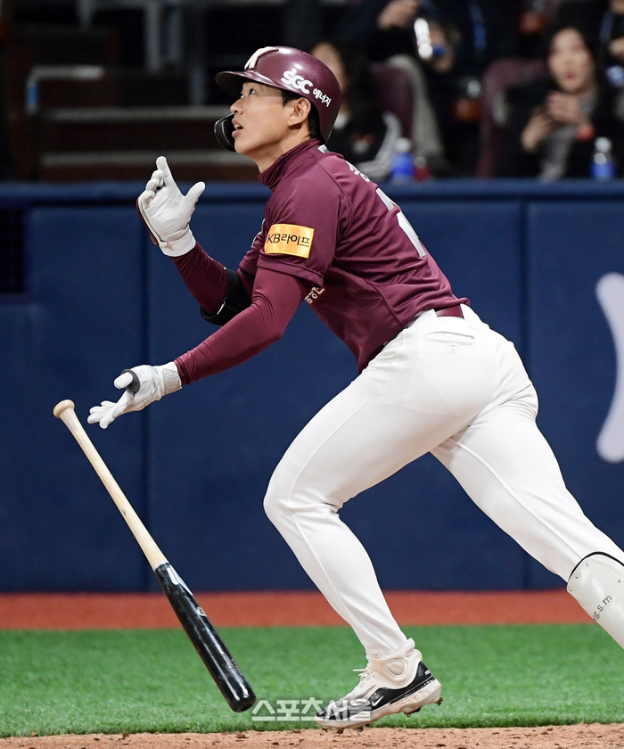 송성문은 3일 수원 케이티위즈파크에서 열리 2024 KBO리그 KT와 원정경기 6번타자 3루수로 선발출장해 7회초 솔로 홈런을 터트렸다. 이 홈런으로 1-1 동점이 됐다.