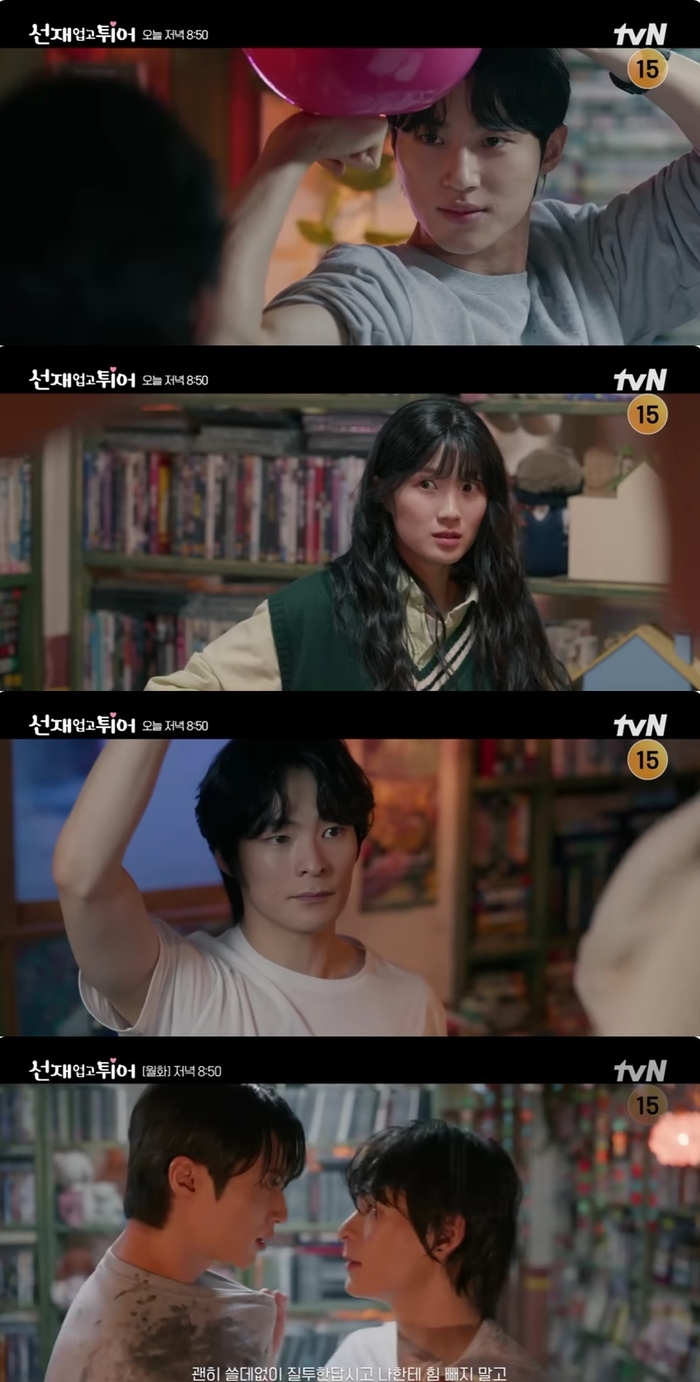 7일 tvN 월화극 ‘선재 업고 튀어’ 10화 선공개 영상이 올라온 가운데 류선재(변우석 분)와 김태성(송건희 분)이 한 치도 물러서지 않는 팽팽한 기싸움을 펼쳐 웃음을 자아냈다.