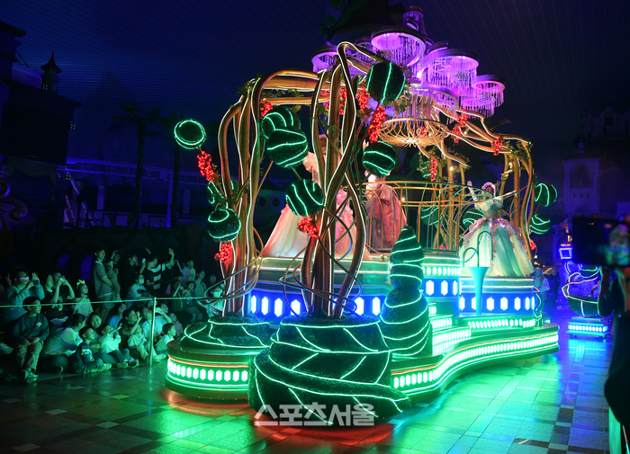 [스포츠서울 | 글.사진 이주상 기자] 35년 역사를 자랑하는 한국을 대표하는 테마파크인 서울 송파구의 롯데월드가 최근 론칭한 ‘WORLD OF LIGHT’(이하 ‘월드 오브 라이트’)를 팬들에게 시연하고 있다. 롯데월드는 최근 조사에서 연인들이 가장 많이 찾는 장소에 1위로 랭크되며 다시 한번 명성을 확인했다. 올해 100억원의 제작비를 들여 만든 신규 퍼레이드 월드 오브 라이트는 5월 가정의 달에 맞춰 오픈했다. 월드 오브 라이트는 색다른 콘셉트의 테마는 물론 전세계 유명 무희들을 고용해 화려함과 다채로움의 극치를 펼치고 있다. 국내 최초의 실내 테마파크로써 몰링 문화의 시작과 놀이문화의 혁신을 이끌며 K-테마파크의 역사를 써 내려 간 롯데월드 어드벤처가 올해 개원 35주년을 맞아 신규 론칭한 프로그램이다. 퍼레이드 개발에만 100억 이상의 투자비와 세계 유명 테마파크 공연 기획과 연출 경험이 있는 전문가를 투입했다. rainbow@sportsseoul.com
