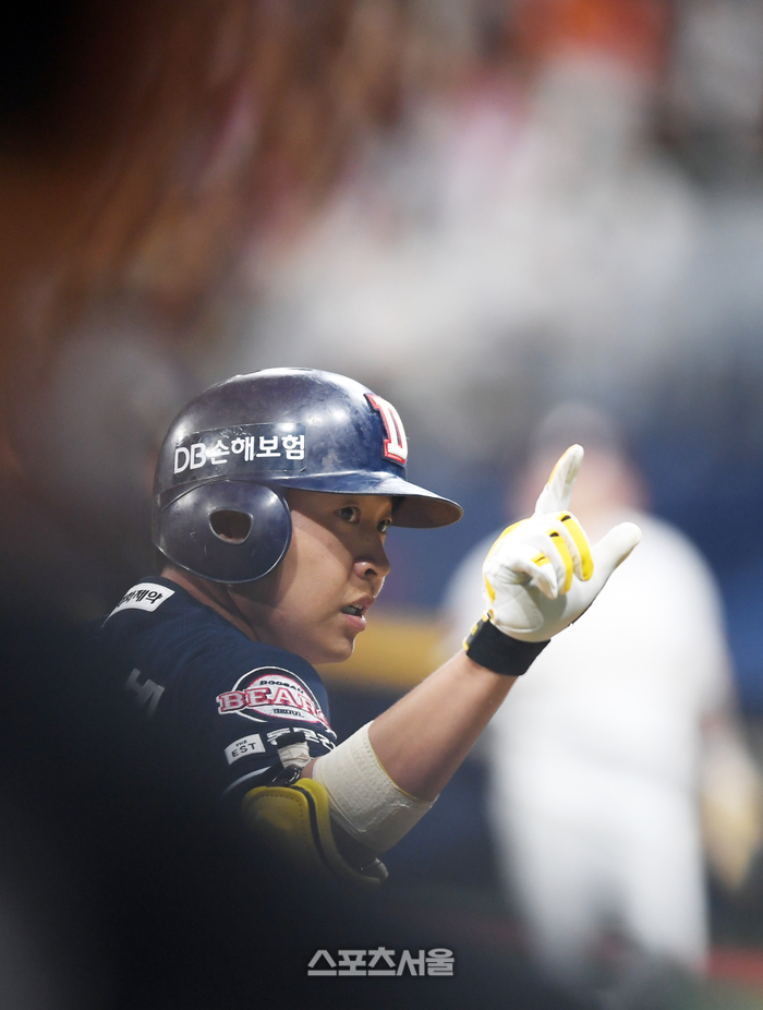 두산 1번타자 정수빈이 7일 고척스카이돔에서 열린 2024 프로야구 키움히어로즈와 두산베어스의 경기 2회초 2사 2,3루에서 2타점 3루타로 출루하고 있다. 2024.05.07. 고척 | 강영조기자 kanjo@sportsseoul.com