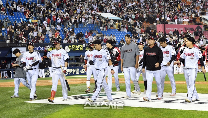 LG 트윈스 선수들이 7일 잠살구장에서 열린 2024 KBO리그 SSG 랜더스와 경기에서 SSG에 2-4로 패하며 3연패에 빠진 뒤 팬들에게 인사를 하고 더그앙웃으로 들어가고 있다. 2024. 5. 7. 잠실 | 박진업 기자 upandup@sportsseoul.com