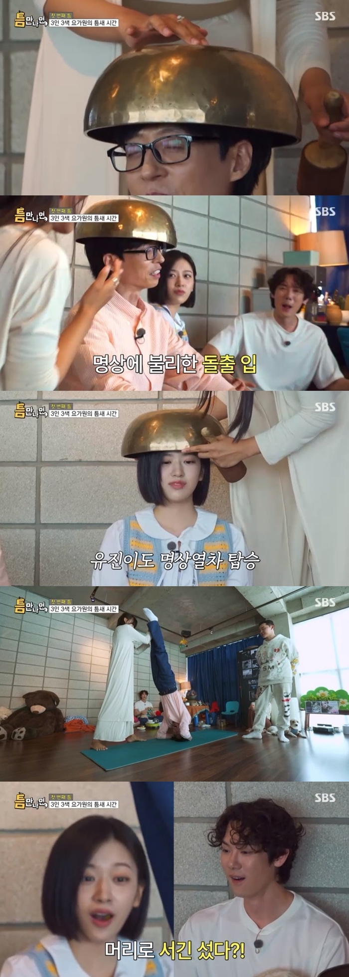 7일 방송된 SBS ‘틈만 나면’에서 유재석과 유연석이 스페셜 게스트 아이브 안유진과 함께 요가원의 틈새 시간을 찾았다. 반려견과 함께하는 편안한 요가원의 분위기에 수다가 쏟아진 가운데, 원장은 즉석에서 싱잉볼 체험을 제안했다.