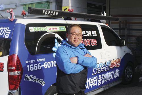 이용성 대표는 전국 유명 세차업소에서 일하며 세차 기술의 이론과 실무를 익히고 일반 차량 세차 서비스를 제공했다. 그러다 7년 전 세차 대상을 관공서, 기업체가 보유한 버스나 덤프트럭, 포크레인ㆍ크레인ㆍ불도저 등 차주가 직접 세차하기 어려운 대형 특수 중장비 차량으로 전환했다.