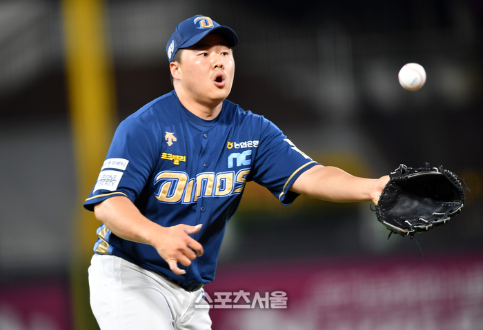 NC 우완불펜 한재승이 8일 수원KT위즈파크에서 열린 2024 프로야구 KT위즈와 NC다이노스 경기 8회말 선두타자 황재균의 땅볼타구를 글러브토스하고 있다. 2024.05.08. 수원 | 강영조기자 kanjo@sportsseoul.com