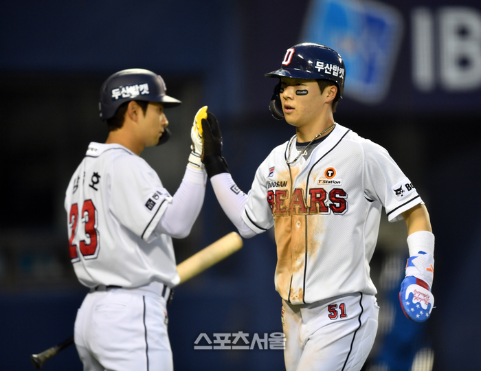 두산 9번타자 조수행이 빠른 발과 야구센스를 유감없이 발휘하며 가볍게 역전득점까지 성공했다.